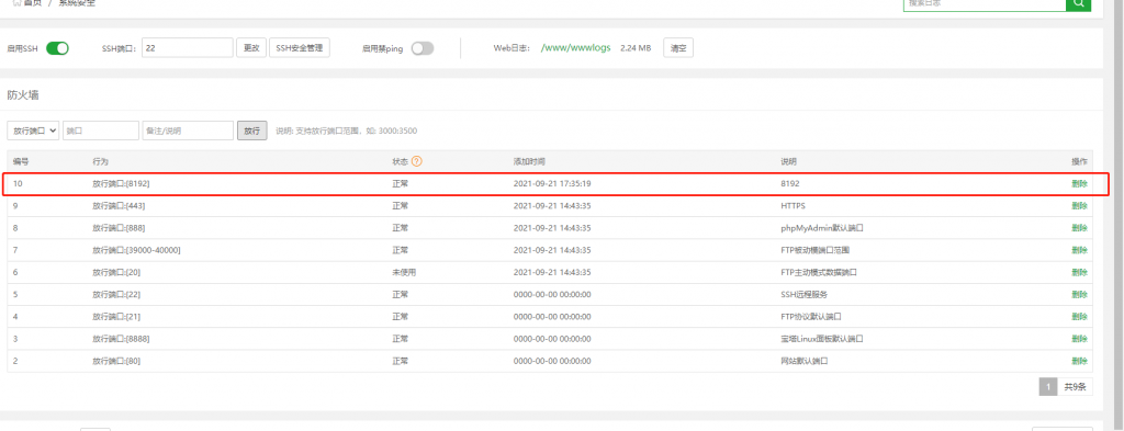 需要在宝塔后台将8192端口进行放行