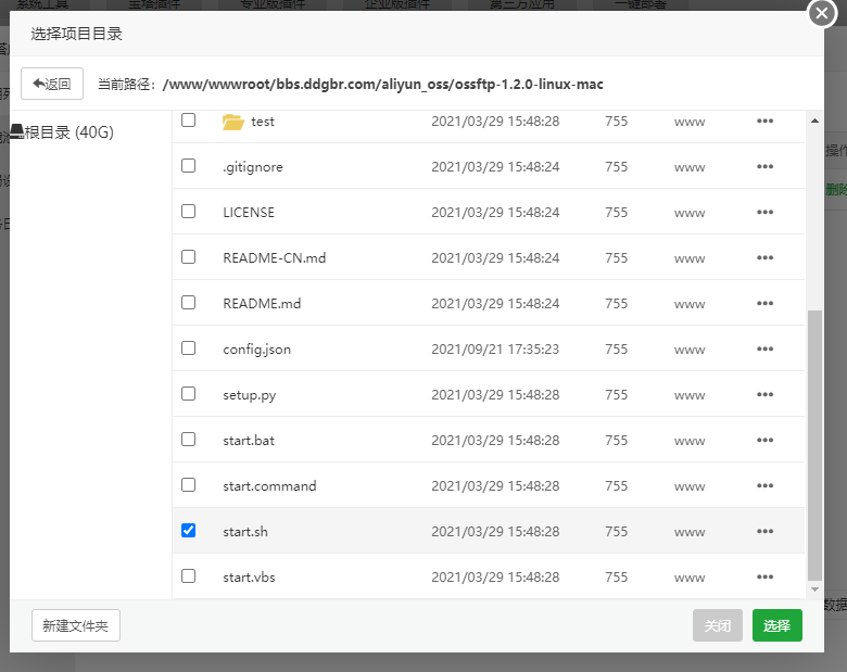 在后台设置启动文件start.sh