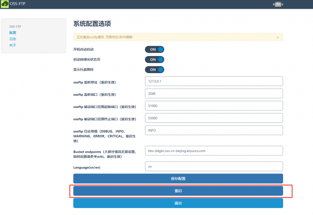 下载ossftp,解压缩然后运行