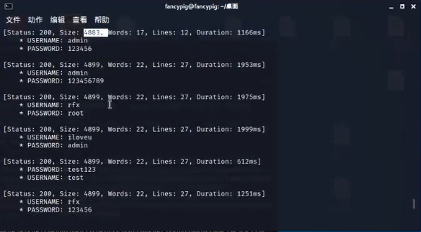 这时我们可以过滤掉4899,看看有没有多个账户可以破解成功的,这时就用到了我们最前面讲的-fs