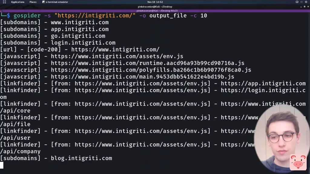 gospider -s "https://intigriti.com/" -o output_file -c 10