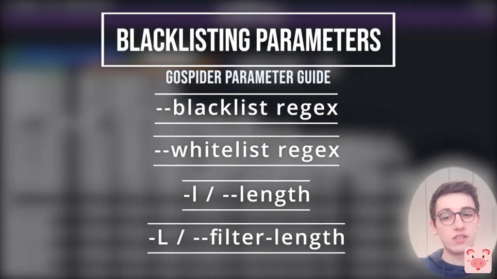 gospider -s "https://google.com/" -o output -c 10 -d 1 --blacklist ".(woff|pdf)"