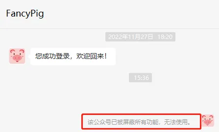 是的呢,你没看错,热心网友的举报成功了,FancyPig公众号目前是被限制了