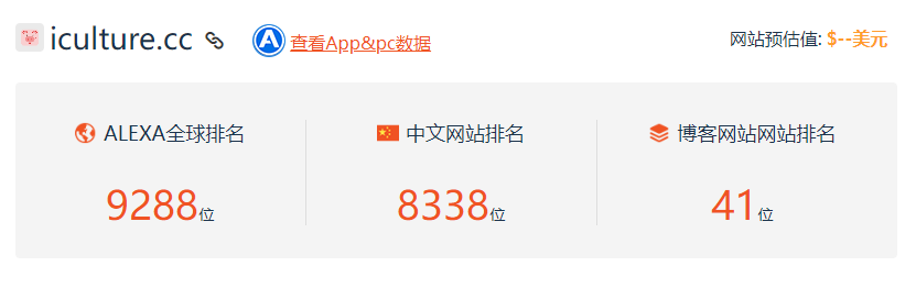 我们现在ALEXA全球排名9288位,中文网站排名8338位,博客网站排名41位