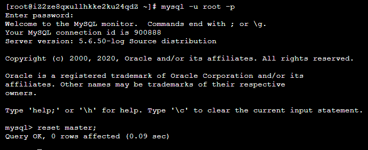 然后输入Mysql数据库的密码,之后可以输入下面的命令清理binlog日志