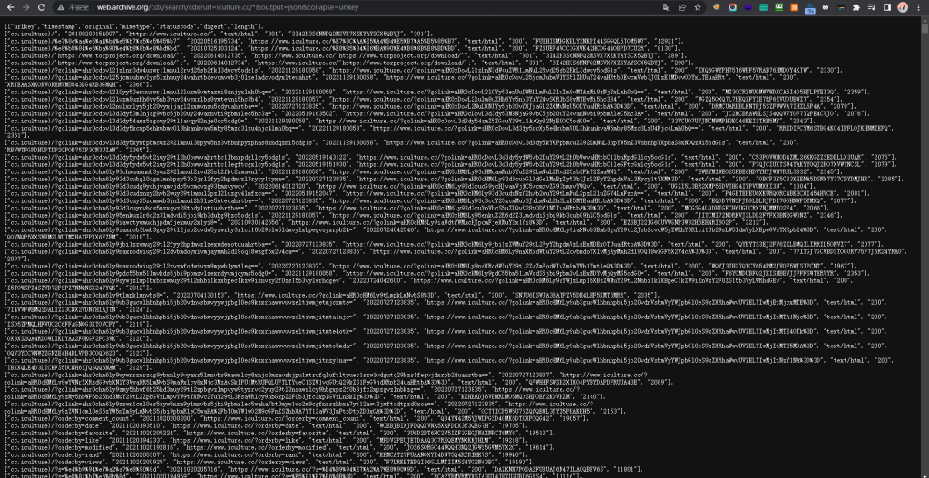 http://web.archive.org/cdx/search/cdx?url=pigsec.cn/*&output=json&collapse=urlkey