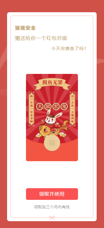 这里的红包封面的主题叫今天你摸鱼了吗?你可以按需修改成自己设计的