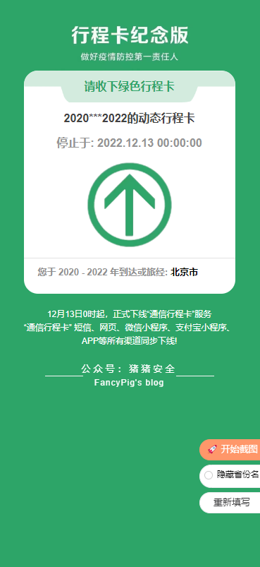 【情怀】行程卡纪念版 | 在线生成工具 | 源码分享