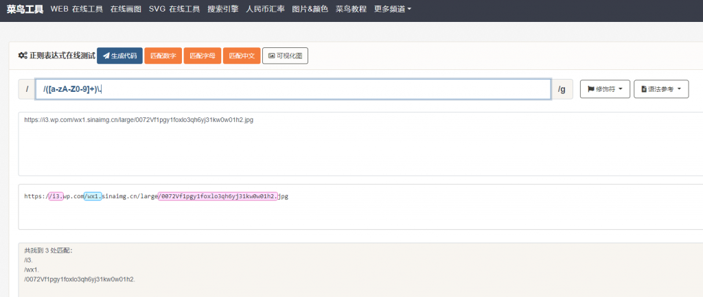 我们放到菜鸟工具的正则表达式中,可以看到还能匹配到其他内容