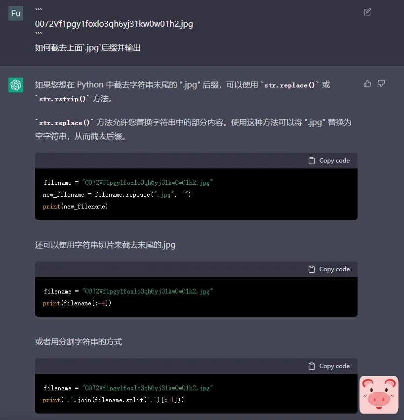 可以看到ChatGPT直接给出了代码,还不忘最后的时候皮一句
