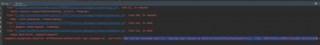 Max retries exceeded with url: /api/api.php (Caused by SSLError(SSLCertVerificationError(1, '[SSL: CERTIFICATE_VERIFY_FAILED] certificate