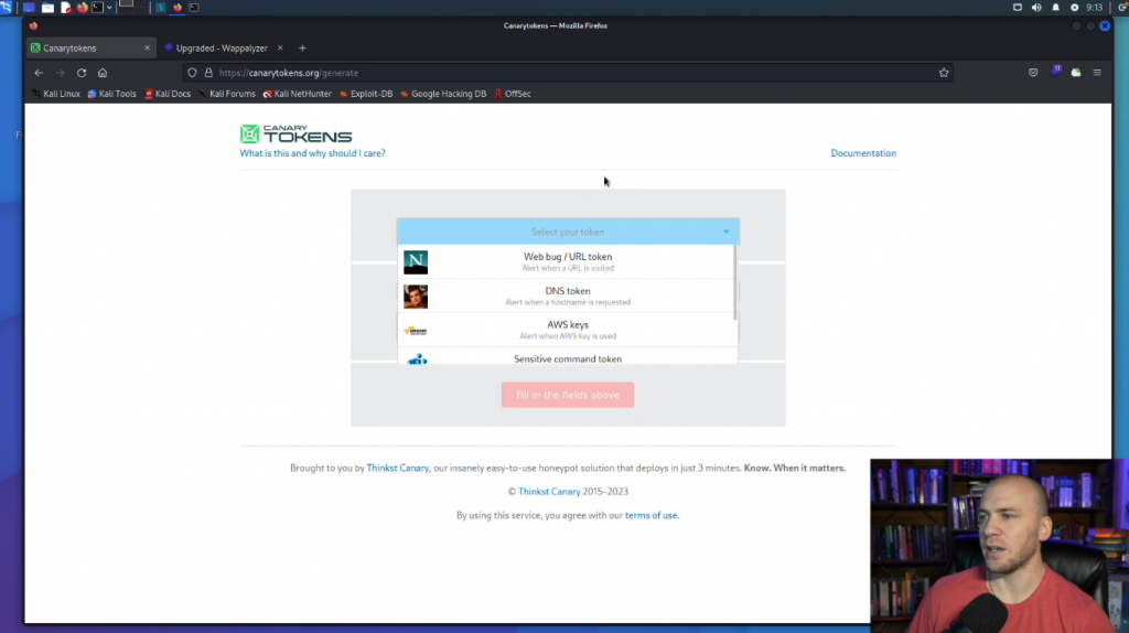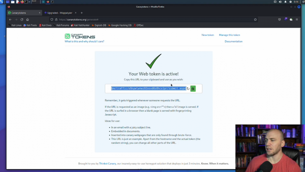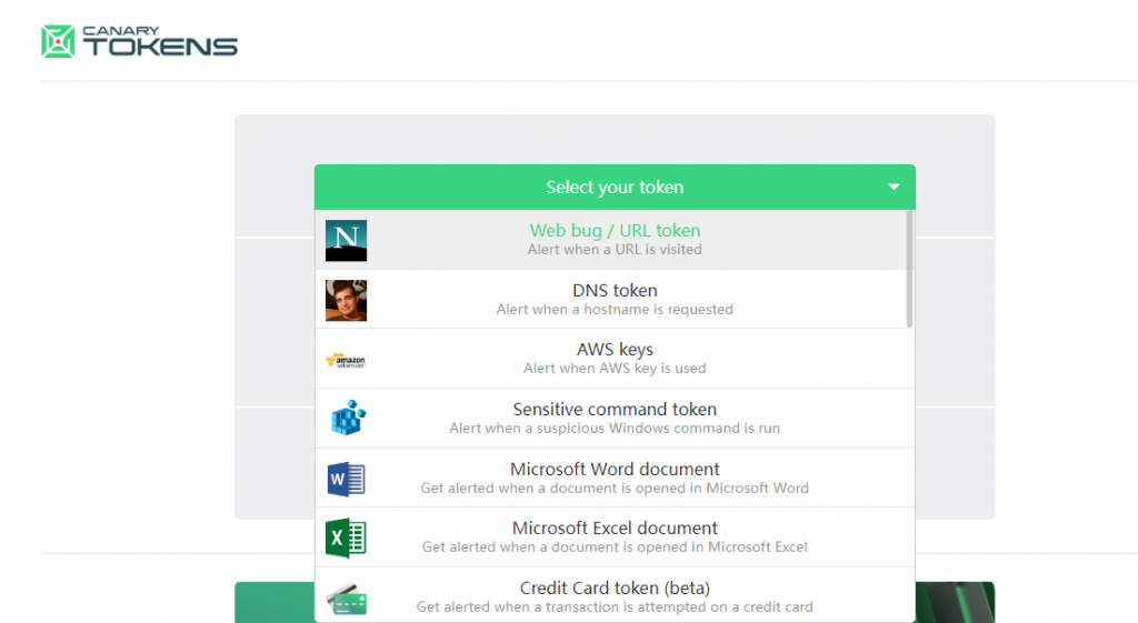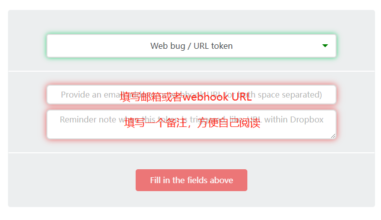 我们可以选择Web bug/URL token,然后填入邮箱,这样一旦有人访问了这个网址,我们就会收到邮件提醒!