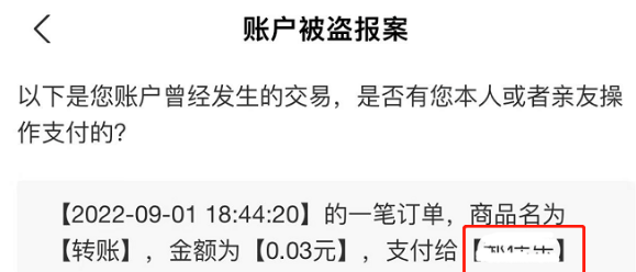 这时我们通过猪头汉堡店查到了他的手机号,然后在支付宝里点击转账,输入他的手机号,然后这里可以看到真实姓名其中的一个字驰