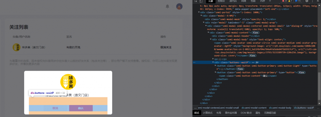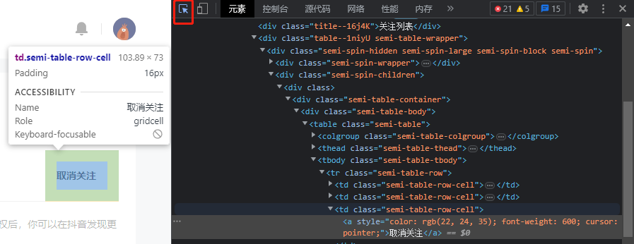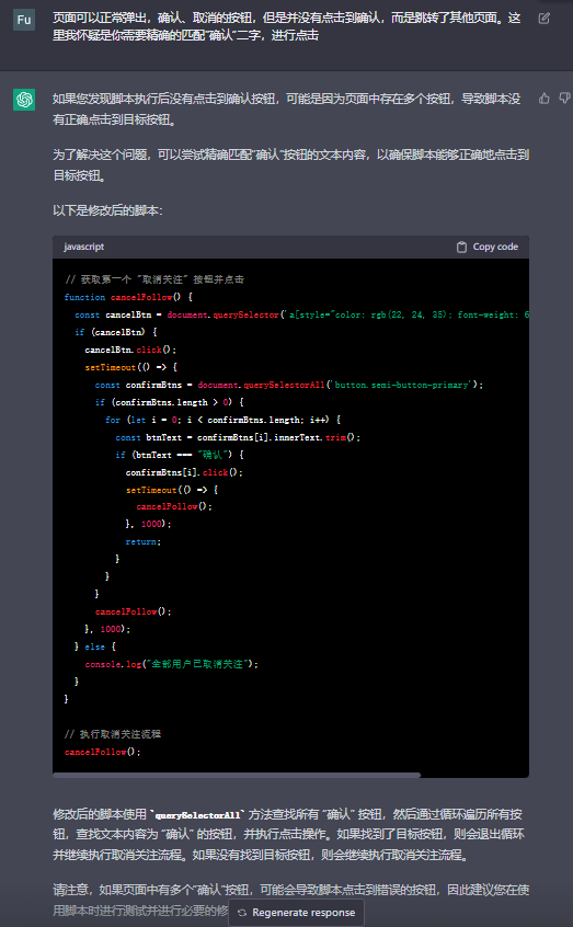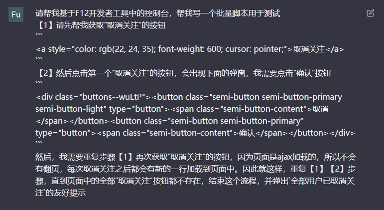 这里就是我们想要ChatGPT点击的取消关注按钮