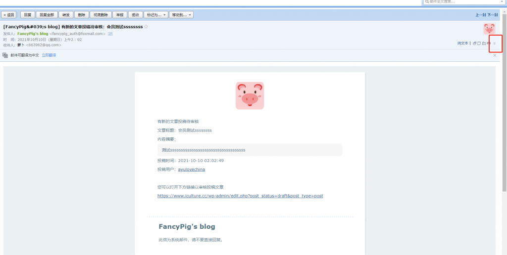 点击显示邮件原文