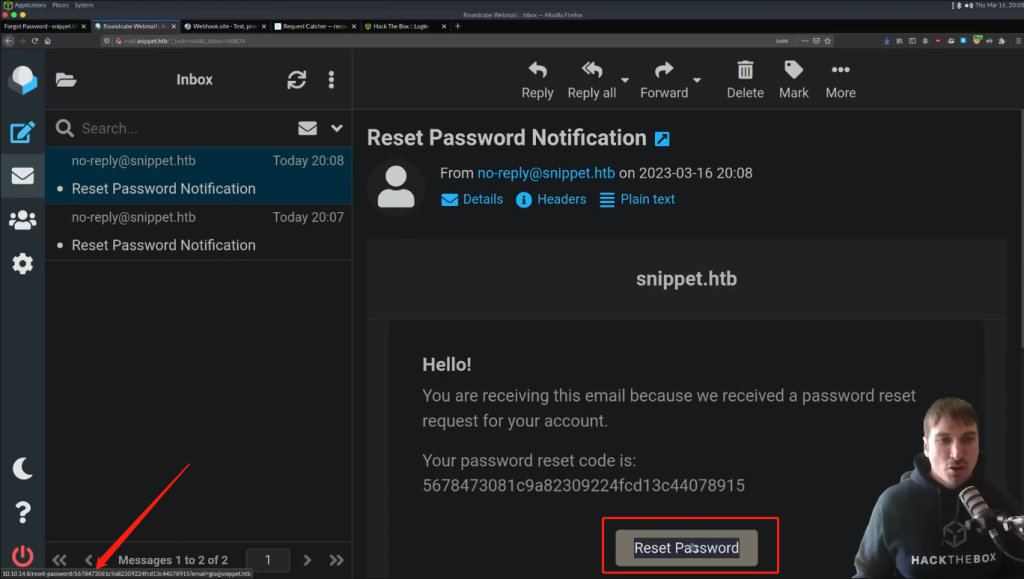 之后,进入邮箱,我们可以看到重置密码的地址前缀已经变成了我们的内网地址