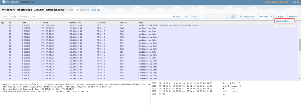 - wireshark pcap样本包 https://www.cloudshark.org/captures/e6fb36096dbb,你可以导出后使用wireshark软件打开分析