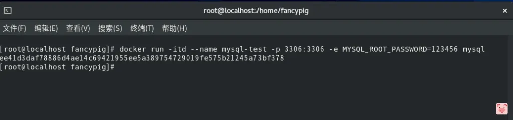 docker run -itd --name mysql-test -p 3306:3306 -e MYSQL_ROOT_PASSWORD=123456 mysql