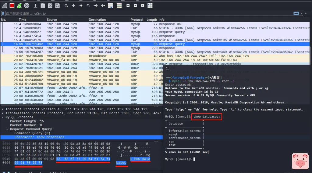 如果你深入研究,可以通过Wireshark进一步分析MySQL协议