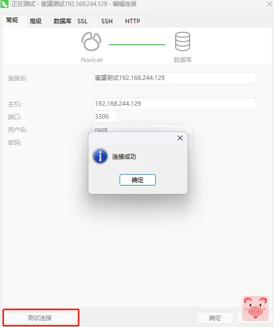 然后我们这里模拟黑客进行连接,使用navicat,通常情况下,我们会进行测试连接