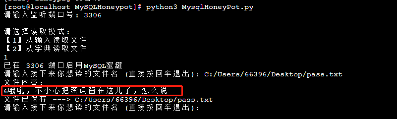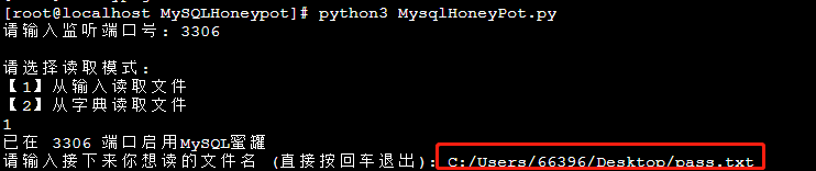 我们现在启动蜜罐,并填入我们要读取的文件路径