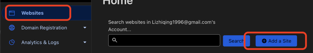 没有 Cloudflare 账号的话可以注册一个,具体注册细节就不多说了。注册或登录到 Cloudflare 的管理界面后,点击侧边栏的 “Websites” ,然后点击 “Add a Site” 按钮准备将域名转到 Cloudflare: