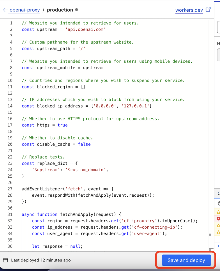 至此 Cloudflare 的 Worker 便创建好了,下面开始修改 Worker 的代码,使其能代理 OpenAI 的 API。