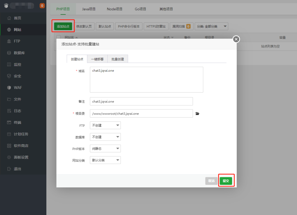 添加站点