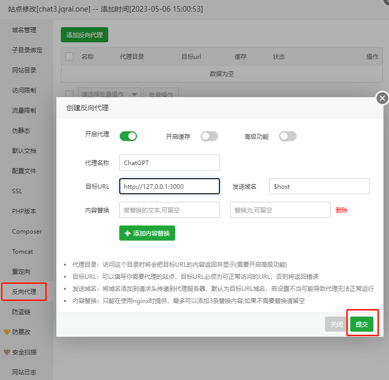 反向代理设置为127.0.0.1:3000