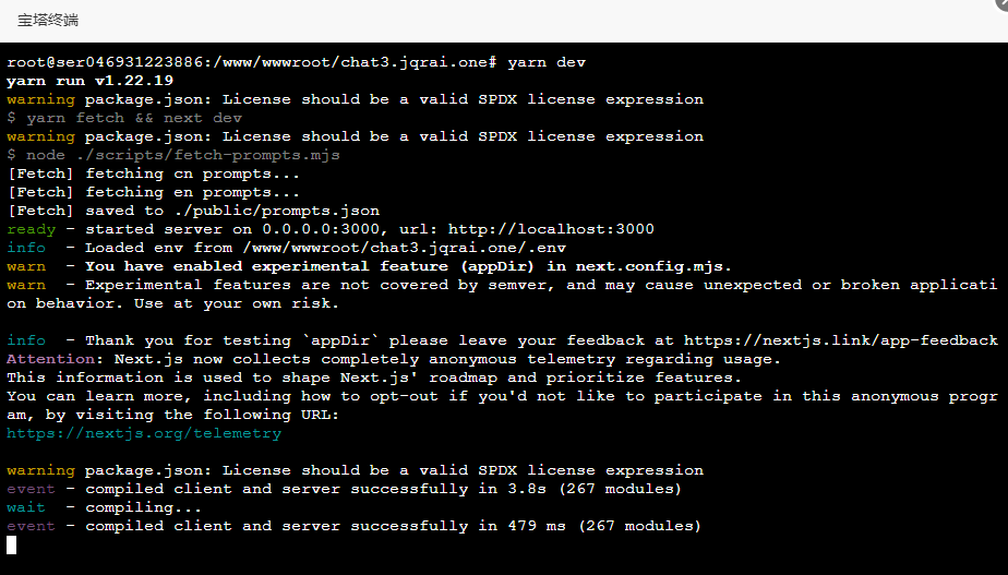 同样地,在项目目录下运行下面的命令来启动服务