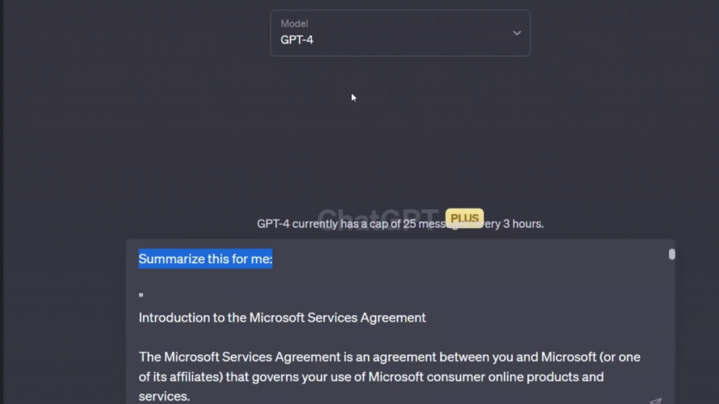 而我要求GPT-4,它的上下文窗口大约有8000个令牌,为我总结一下。然后让我们看看会发生什么。