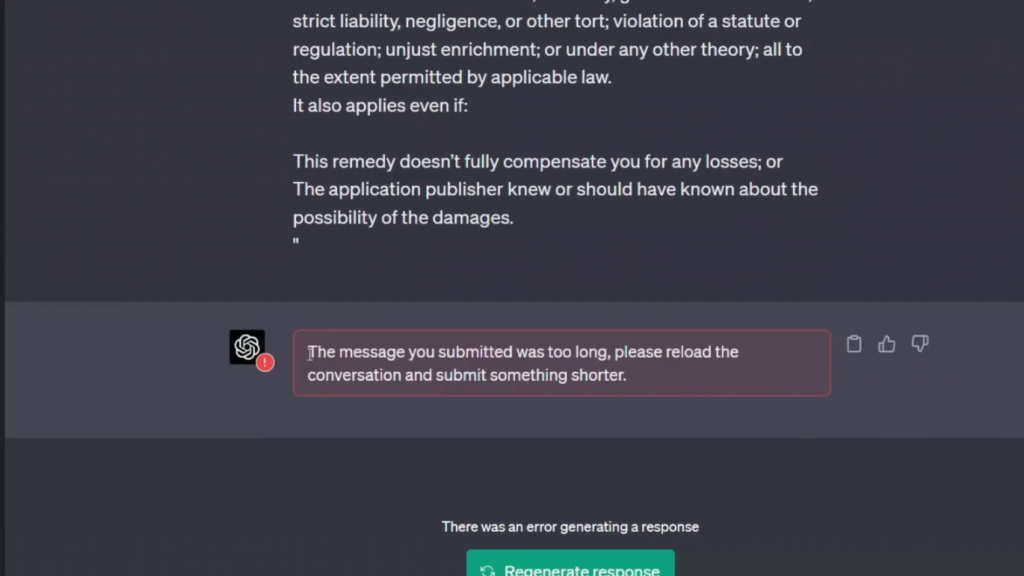 请重新加载对话并提交更短的内容。所以这一切都归结于上下文窗口的概念,它可以被定义为模型在生成输出时考虑的最近输入文本的数量。