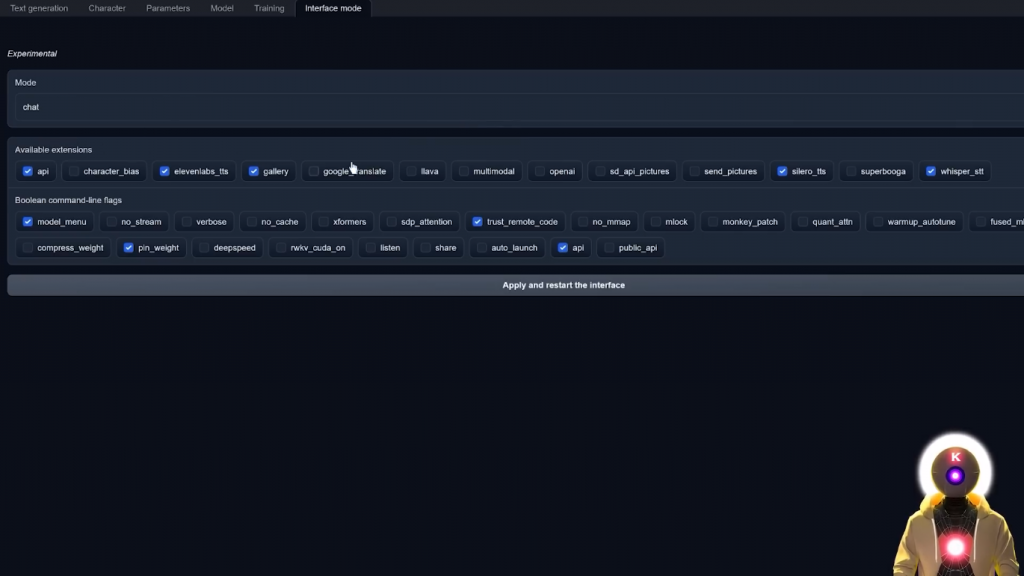 👉为了使用这些功能,你需要安装Oobabooga文本生成的web界面,如果你还未安装,我有一个安装视频给你。而在安装了这个界面之后,你就可以享受到这些有趣的扩展功能啦!😃
