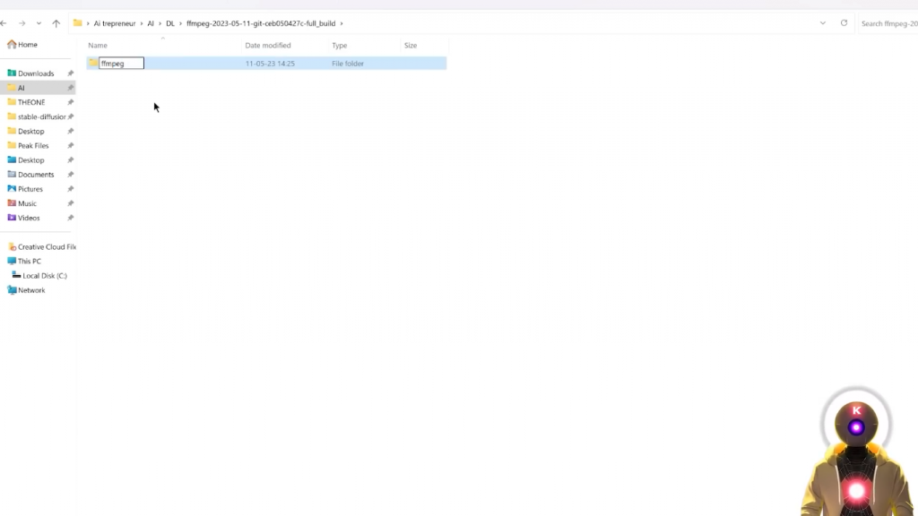然后你要去该文件夹内,你会看到另一个文件夹,你要把它重命名为ffmpeg,