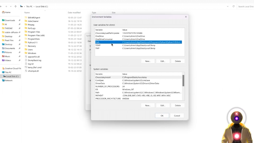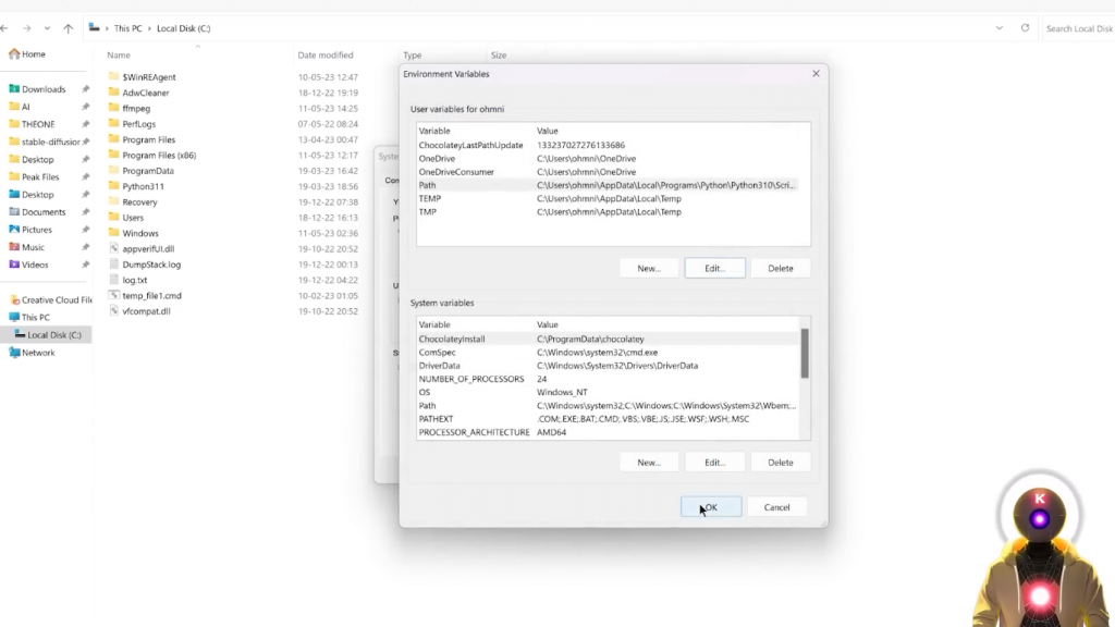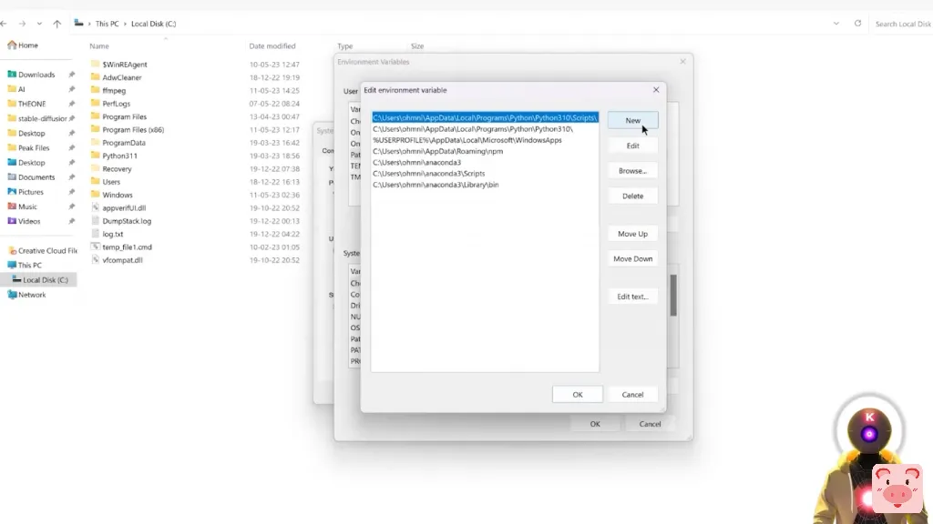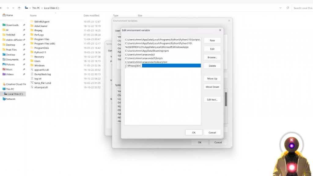 在这里你要输入C:\ffmpeg\bin你只是要输入那个文件夹路径,别担心,我会把这个写在下面的描述中,所以你可以直接复制和粘贴它,然后你要点击确定,然后再确定一次。