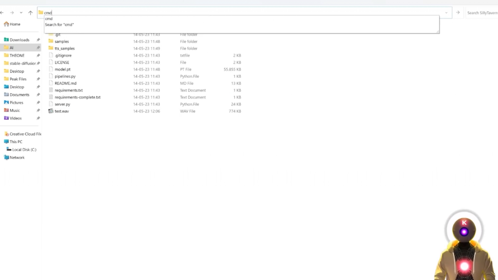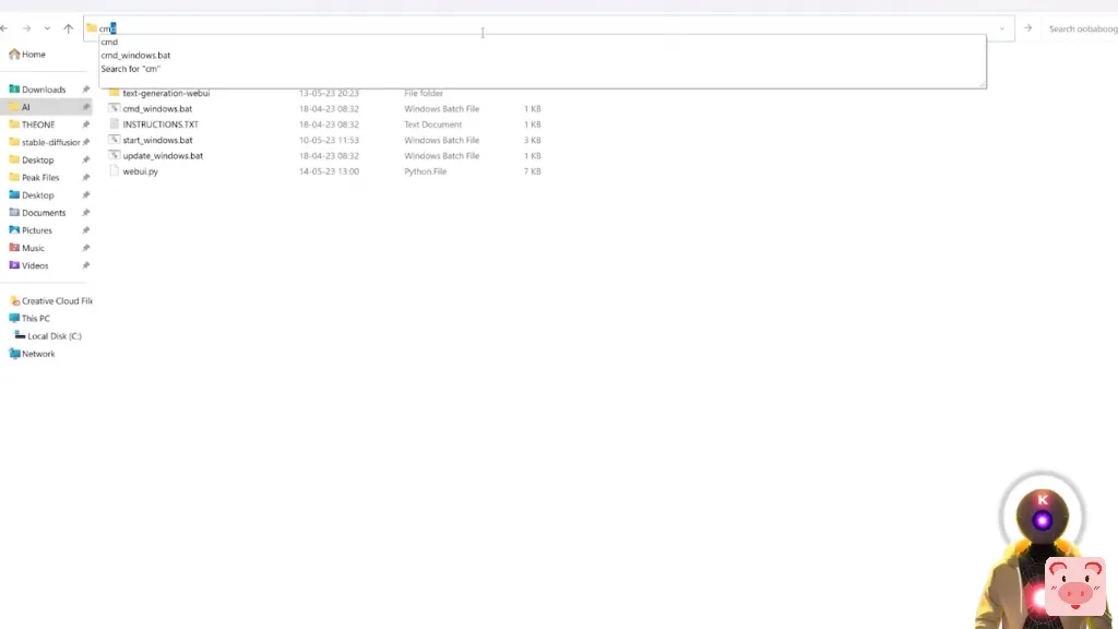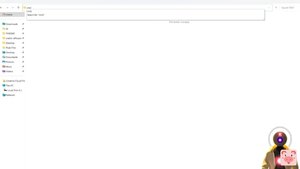 现在要确保一切正常,你要调出命令提示符窗口,例如你可以点击文件夹路径,输入cmd,按回车键,