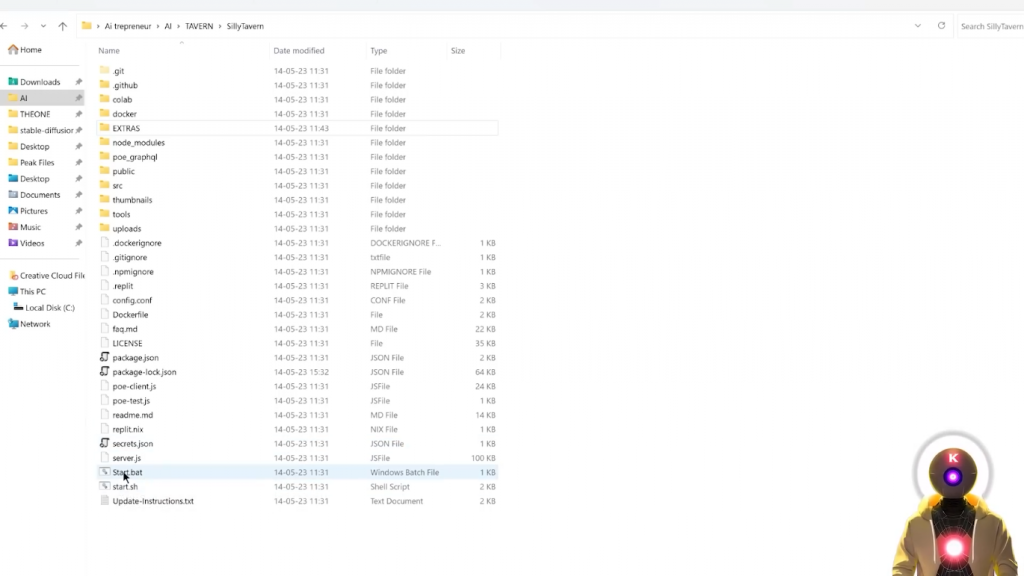 所以现在你要运行Silly Tavern,通过点击start.bat文件,