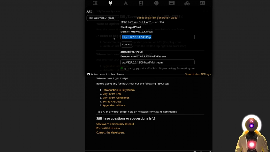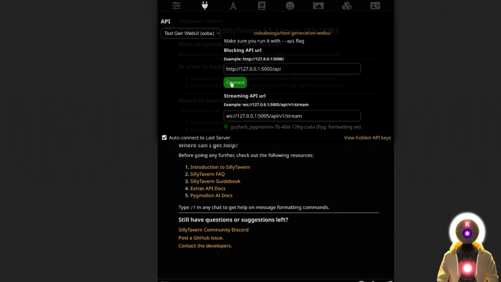 你可以看到,最后,我们正在运行Silly Tavern的额外功能,有一个localhostURL。如果现在,我们点击这里,然后输入localhost URL,然后点击连接,