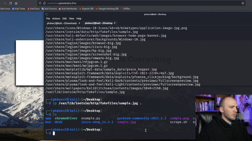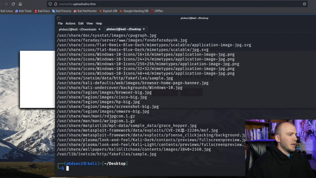 所以我们可以做的第一件事是尝试上传JPEG文件。所以我们会抓一个并把它移到我们的桌面上。所以我们可以直接输入locate,我们只需要一个JPG。