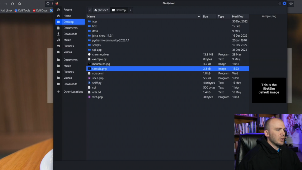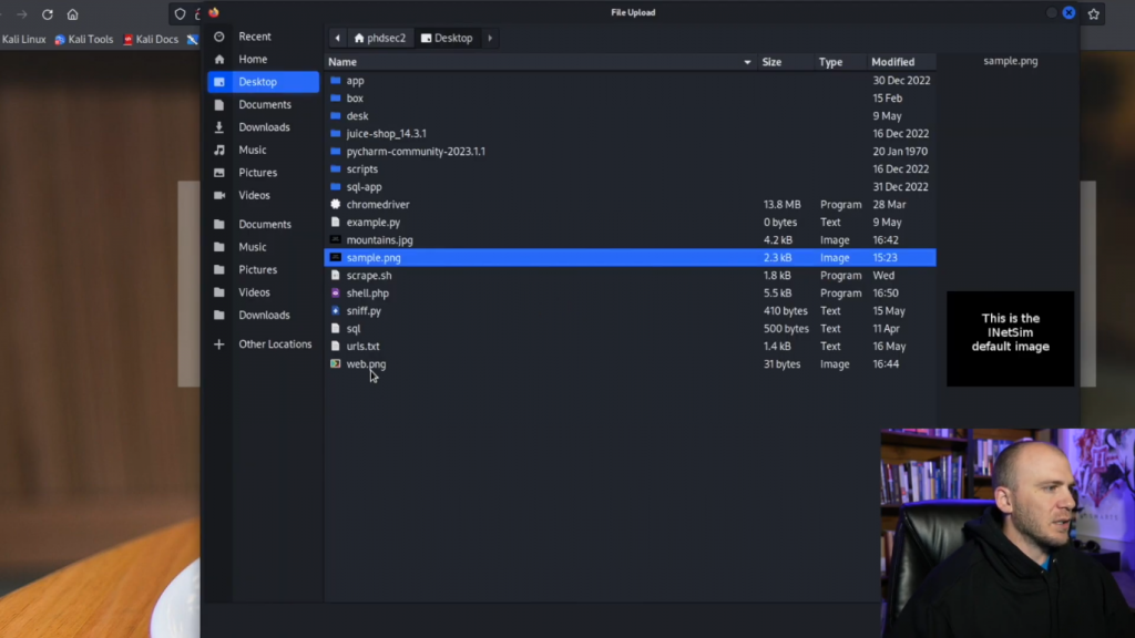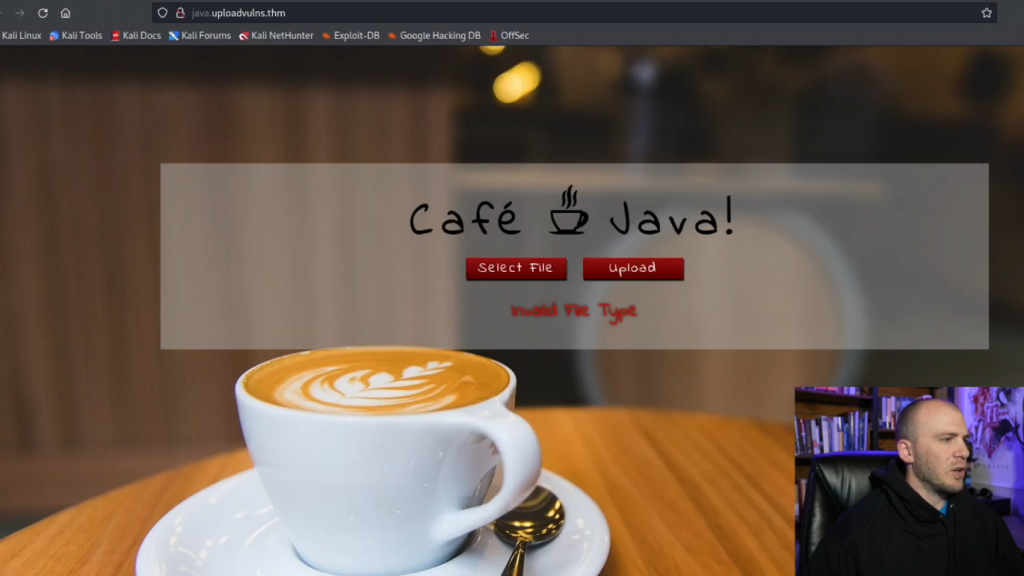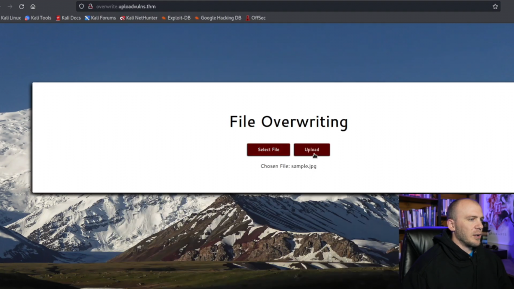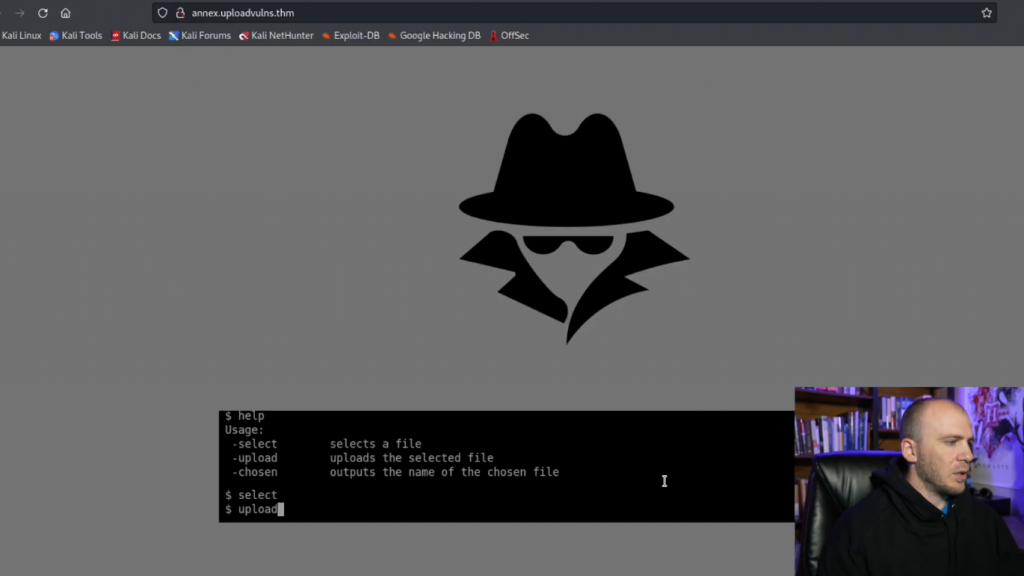 因此,让我们继续并关闭这个。我们将打开下一个网页,我们将上传利用。这一个基本上会非常CTF与这个小文件上传命令提示我们在这里。我想他们这样做只是为了改变一下。但我们可以做的是,你只需键入select,