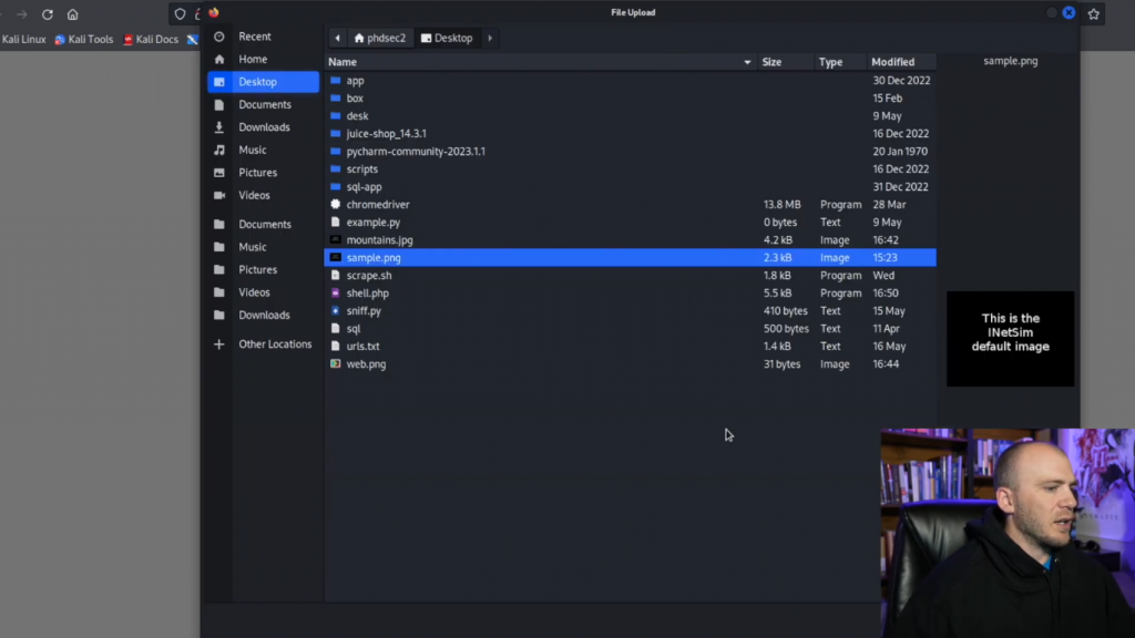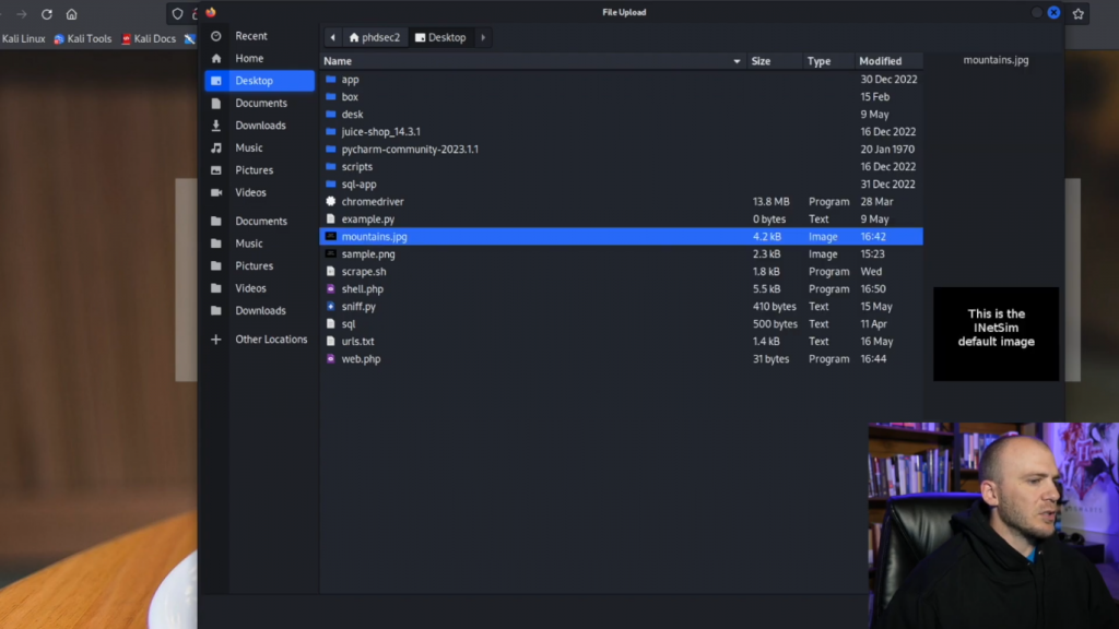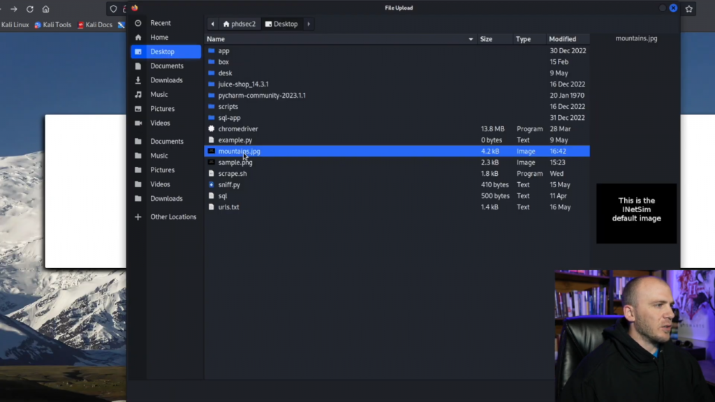所以现在我们可以选择文件。我们将抓取一个JPEG样本,我们将打开它。而如果我们上传这个,它应该告诉我们,它上传成功。