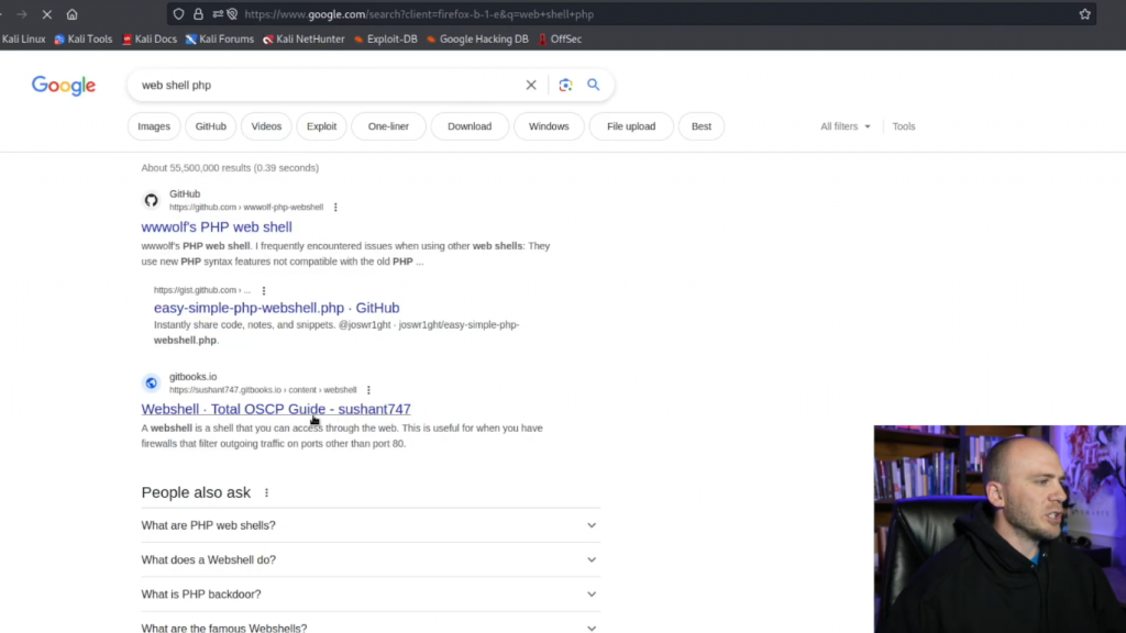 所以我们要上传一个shell。我们要用两种不同的方法来做这个。你会看到人们最常见的是以webshell的形式上传shell。然后他们会测试它。然后他们会上传一个shell,通常来自Pentest Monkey,如果你在看任何一种CTFS。这就是你通常要看到的完成方式。所以我们要做两种方式。所以我们要做的第一件事就是去谷歌,然后我们要输入web shell PHP而我们要在这里寻找sushant747。