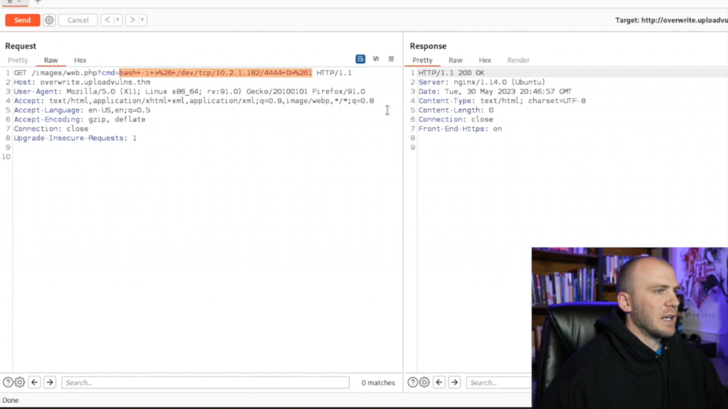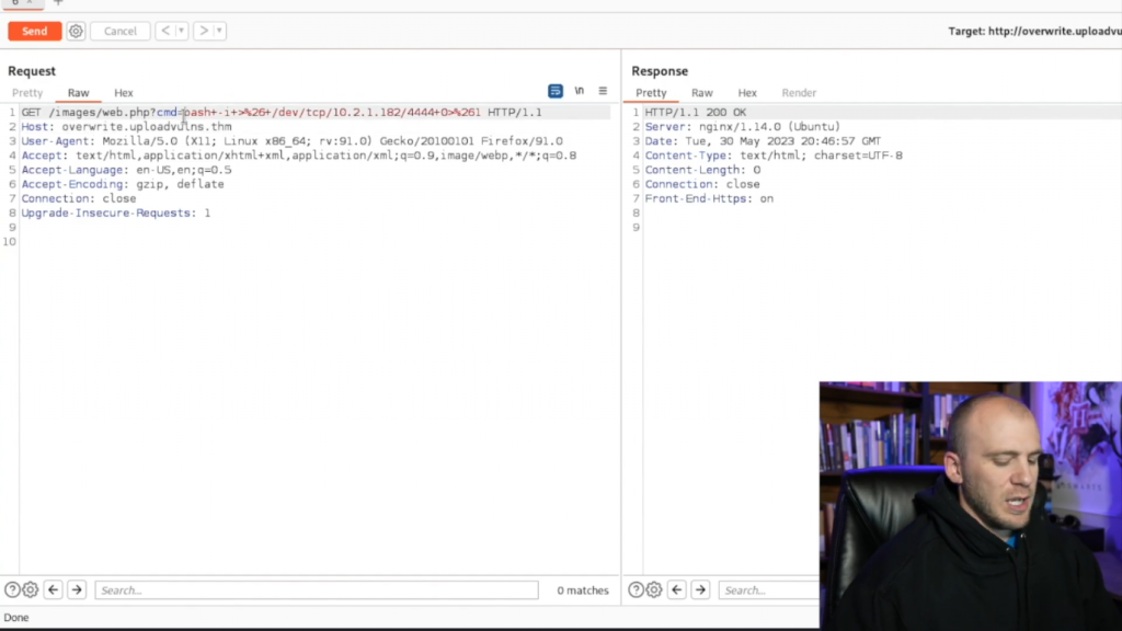 让我们实际试试我们的web.php。所以我们得到了我们的gif,但实际上我们没有得到我们的shell回来。