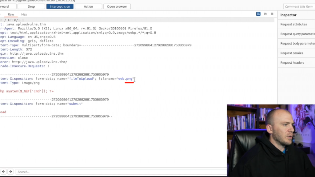 所以有几种不同的方法我们可以尝试绕过这个。第一种方法是要到这里来,让我们实际上只是把名字改成我们的反弹shell。所以我们将改变我们的反弹shell名称,web shell,我们将改变它为web.png。