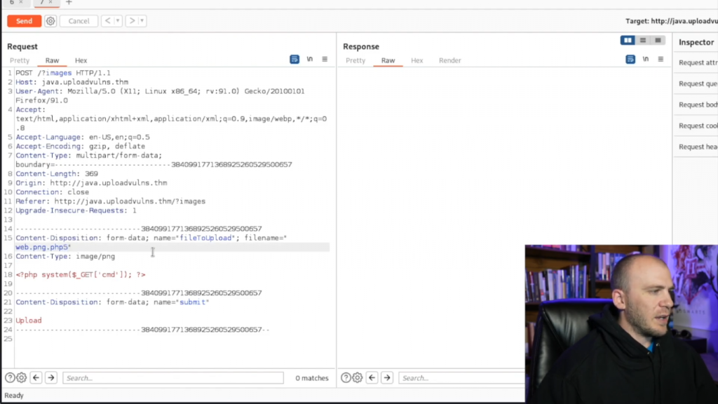 所以让我们通过去(修改)我们的文件类型来试一下。我们可以试试我们之前所做的,输入png.php并发送这个,